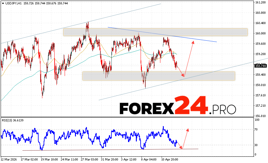 USD/JPY Forecast Japanese Yen for April 16, 2026 suggests an attempt at a bearish correction with a test of the support zone near 158.35. Then, a continuation of the bullish momentum in quotes to above 159.65. A test of the trendline on the relative strength indicator (RSI) would support the pair’s growth. A decline in prices and a breakout of the 157.45 level would invalidate the upward trend. This would indicate a breakout of the support level and continued decline, with a potential target below 155.05.