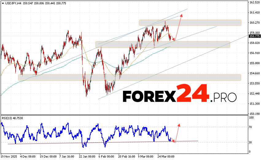 USD/JPY Forecast Japanese Yen for April 2, 2026 suggests an attempt to develop a bearish correction with a test of the support zone near 158.45. Then, the bullish momentum will continue to develop above 160.85. A test of the trend line on the RSI will support the pair’s growth. The upside scenario would be cancelled if prices fall and break below 157.25. This would indicate a breakout of the support level and a continued decline in the pair, with a potential target below 155.35.