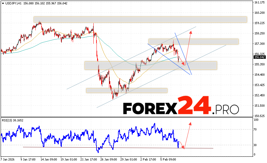 USD/JPY Forecast Japanese Yen for February 10, 2026, suggests an attempt at a bearish correction with a test of the support zone near 155.35. Then, the bullish momentum in quotes will continue to develop above 158.25. A test of the trendline on the relative strength indicator (RSI) would support the pair’s upside. A decline in quotes and a breakout of 154.35 would cancel out the upward trend. This would indicate a breakout of the support level and a continued decline in the pair with a potential target below 153.65.