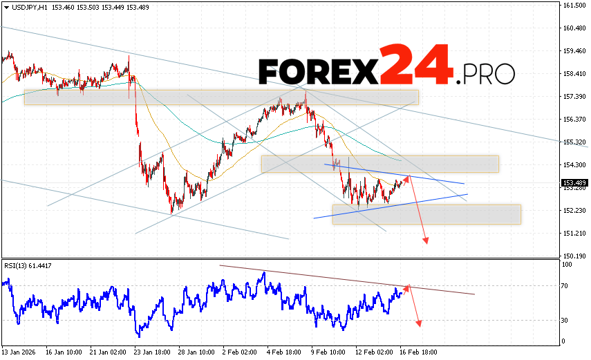 USD/JPY Forecast Japanese Yen for February 17, 2026 suggests an attempt at a bullish correction, testing the resistance zone near 153.65. Subsequently, the bearish momentum will continue to develop below 150.75. A test of the trendline on the relative strength indicator (RSI) would support a downside move. A strong rally and a breakout of 154.65 would invalidate this downside scenario. This would signal a breakout of the resistance level and a continued rally with a potential target above 156.85.
