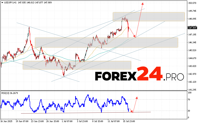 USD/JPY Forecast Japanese Yen for July 18, 2025 suggests an attempt at a bearish correction with a test of the support zone near the 147.15 level. Then, the bullish momentum of the quotes will continue to develop in the area above the 150.65 mark. The test of the trend line on the relative strength indicator will support the pair’s growth. A decline in quotes and a breakout of the 145.85 area will cancel the rise scenario. This will indicate a breakout of the support level and a continuation of the pair’s decline with a potential target below the 143.75 level.