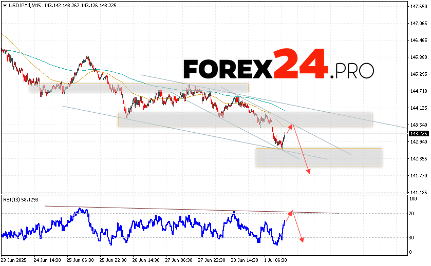 USD/JPY Forecast Japanese Yen for July 2, 2025 suggests an attempt at a bullish correction with a test of the resistance zone near the 143.55 level. Then, the bearish momentum of the quotes will continue to develop in the area below the 141.75 mark. A test of the trend line on the relative strength indicator will support the pair’s decline. A strong rise in quotes and a breakout of the 144.05 area will cancel the decline scenario. This will indicate a breakout of the resistance level and a continuation of the pair’s growth with a potential target above the 146.25 level.