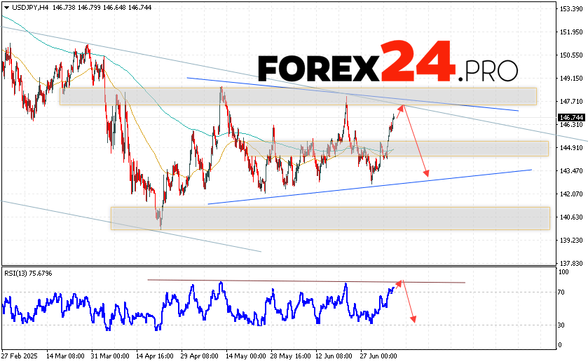 USD/JPY Forecast Japanese Yen for July 9, 2025suggests an attempt at a bullish correction with a test of the resistance zone near the 147.65 level. Then, the bearish momentum of quotes will continue to develop in the area below the 143.45 mark. A test of the trend line on the relative strength indicator will support the decline of the pair. A strong rise in quotes and a breakout of the 149.45 area will cancel the decline scenario. This will indicate a breakout of the resistance level and a continuation of the pair’s growth with a potential target above the 151.65 level.