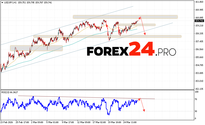 USD/JPY Forecast Japanese Yen for March 27, 2026 suggests an attempt to develop a bullish correction with a test of the resistance zone near 160.25. Then, the bearish momentum in quotes should continue to develop below 158.45. A test of the trendline on the relative strength indicator (RSI) would support a decline in the pair. A strong rally and a breakout of the 161.05 level would invalidate the downside scenario. This would signal a breakout of the resistance level and continued growth with a potential target above 161.75.