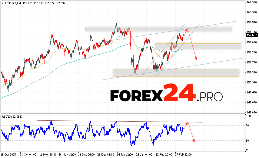 USD/JPY Forecast Japanese Yen for March 6, 2026 suggests an attempt at a bullish correction, testing the resistance zone near 158.25. Subsequently, the bearish momentum will continue to develop below 153.85. A test of the trendline on the relative strength indicator (RSI) would support a downside move. A strong rally and a breakout of 158.75 would invalidate this downside scenario. This would signal a breakout of the resistance level and continued growth with a potential target above 161.25.