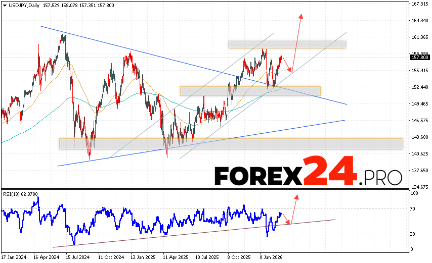 USD/JPY Weekly Forecast March 9 – 13, 2026 suggests an attempt at a bearish correction and a test of the support level near 155.35. From there, we should expect continued growth above 164.85. An additional signal in favor of growth would be a test of the trend line on the relative strength indicator. The pair’s upward trend would be cancelled if it falls and breaks below 152.65. This would indicate continued decline with a potential target below 150.25.