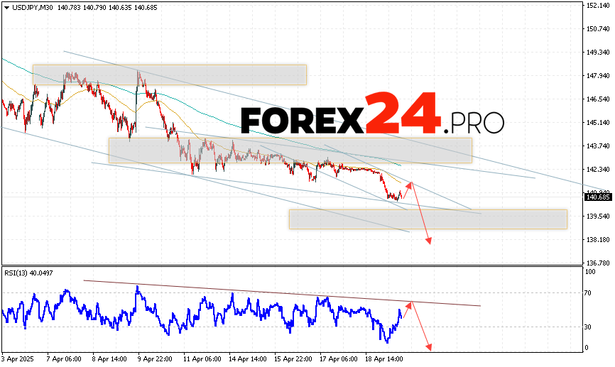 USD/JPY Forecast Japanese Yen for April 22, 2025 suggests an attempt to grow the price of the currency pair and test the resistance area near the 141.75 level. Then, the continuation of the development of the bearish impulse of quotes to the area below the 138.25 level. The test of the resistance line on the relative strength indicator will be in favor of the growth of the pair. The cancellation of the fall option will be a strong growth and a breakout of the 142.75 area. This will indicate a breakout of the resistance level and continued growth in the pair with a potential target above the 145.35 level.