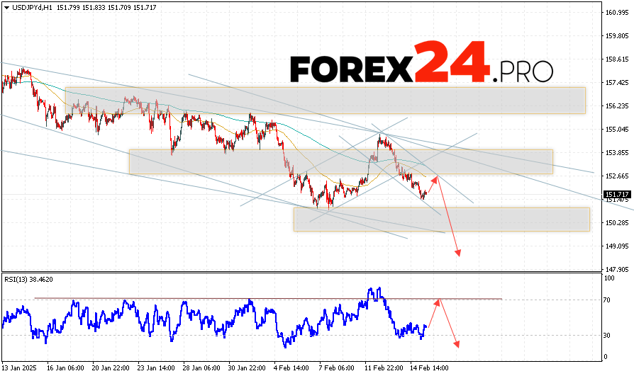 USD/JPY Forecast Japanese Yen for February 18, 2025 suggests an attempt to test the resistance area near the 152.65 level. Then, a continuation of the fall in quotes to the area below the 148.85 level. A test of the resistance line on the relative strength indicator will be in favor of the pair’s decline. The cancellation of the fall option will be a strong growth and a breakout of the 153.05 area. This will indicate a breakout of the resistance level and continued growth for the pair with a potential target above the level of 155.65.