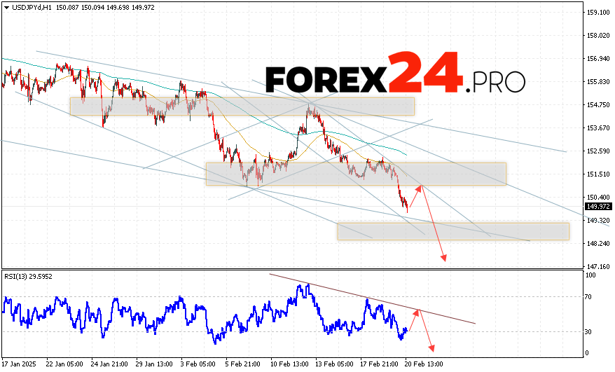 USD/JPY Forecast Japanese Yen for February 21, 2025 suggests an attempt to test the resistance area near 150.55. Then, a continuation of the fall in quotes to the area below 147.45. A test of the resistance line on the relative strength indicator will be in favor of the pair’s decline. The cancellation of the fall option will be strong growth and a breakout of the 151.65 area. This will indicate a breakout of the resistance level and continued growth in the pair with a potential target above 153.25.