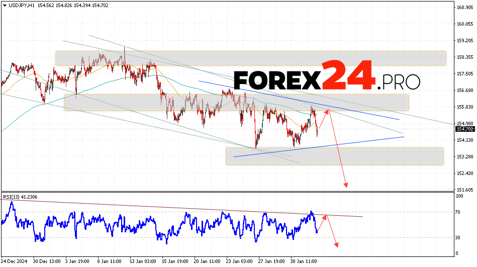 USD/JPY Forecast Japanese Yen for February 4, 2025 suggests an attempt to test the resistance area near the 155.25 level. Then, a continuation of the fall in quotes to the area below the 151.75 level. A test of the resistance line on the relative strength indicator will be in favor of the decline of the pair. The cancellation of the fall option will be a strong growth and a breakout of the 156.75 area. This will indicate a breakout of the resistance level and continued growth in the pair with a potential target above the level of 159.65.