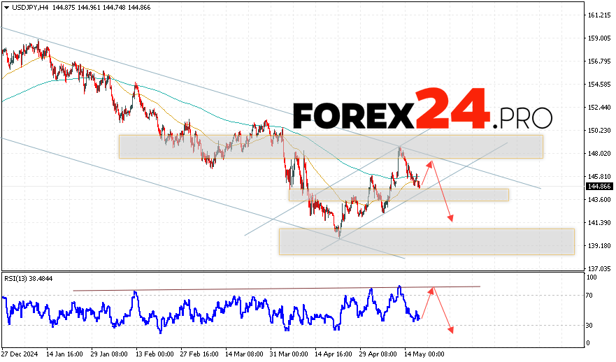 USDJPY Forecast Japanese Yen for May 20, 2025 suggests an attempt to rise in currency pair prices and a test of the resistance area near the level of 146.25. Then, continuation of the bearish momentum in the price region below the level of 141.45. A decline in the pair will be indicated by testing the resistance line on the Relative Strength Index (RSI) indicator. Cancellation of the downward option is a strong rise and breakout above the area of 148.75. This will indicate a break through the resistance level and continuation of the rise on the pair with a potential target above the level of 151.25.