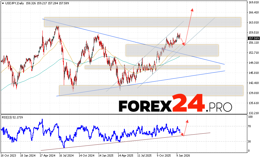 USDJPY Weekly Forecast January 26 – 30, 2026 suggests an attempt at a bearish correction and a test of support near 155.65. From here, we should expect continued growth above 166.75. A test of the trendline on the relative strength indicator (RSI) would be an additional signal of upside. A decline and a break of 153.25 would cancel out the upside scenario. This would indicate continued decline with a potential target below 150.45.